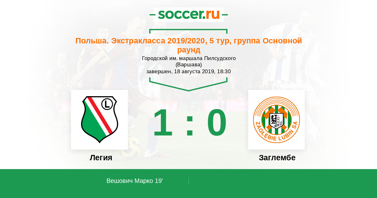 Протокол матча Легия против Заглембе