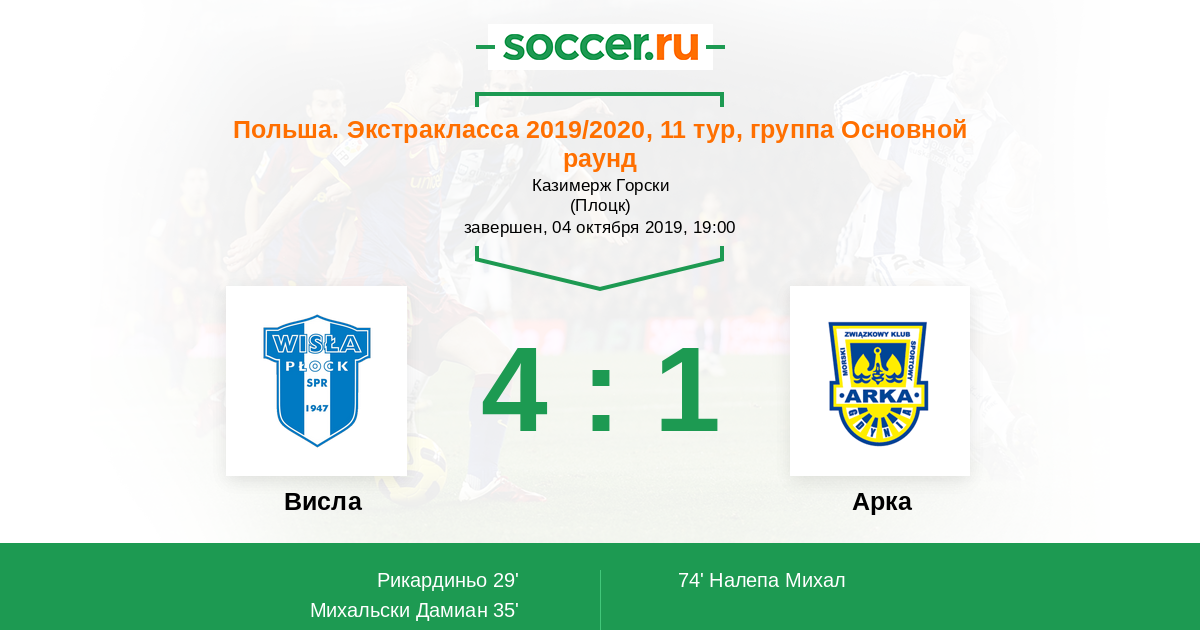74' (3:1) Налепа Михал (14) (Будзински Марчин (27))