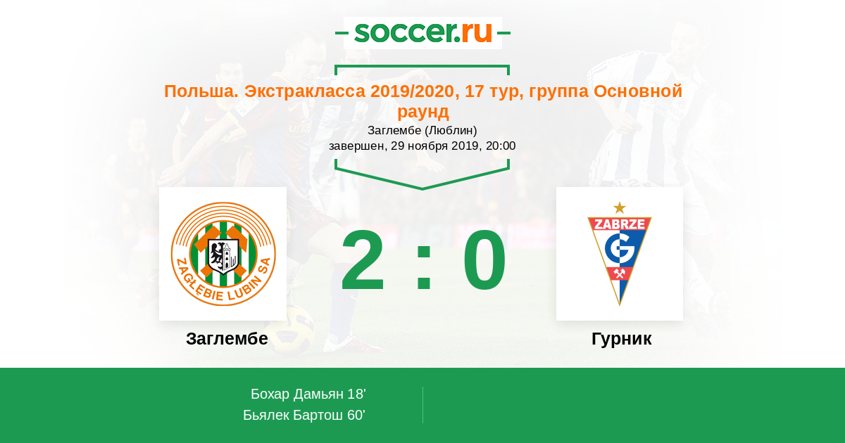 Протокол матча Заглембе против Гурник