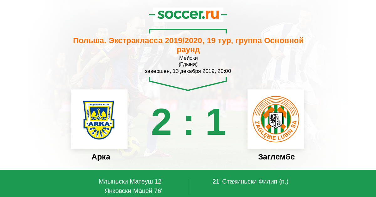 Протокол матча Арка против Заглембе