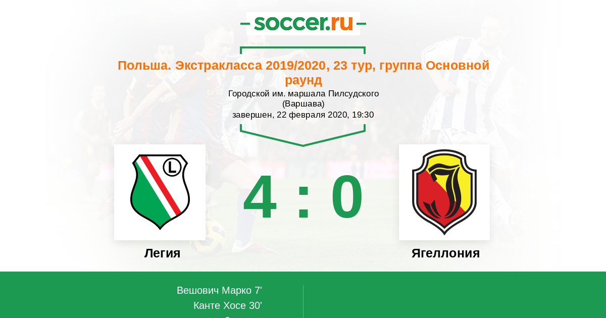Протокол матча Легия против Ягеллония