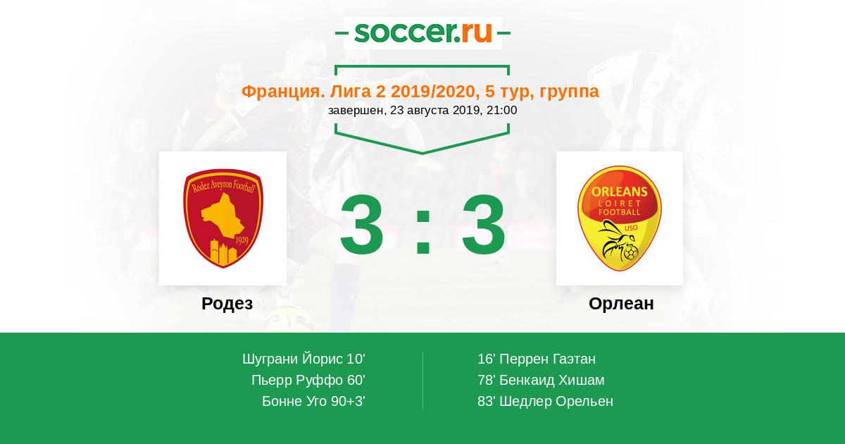 Протокол матча Родез против Орлеан