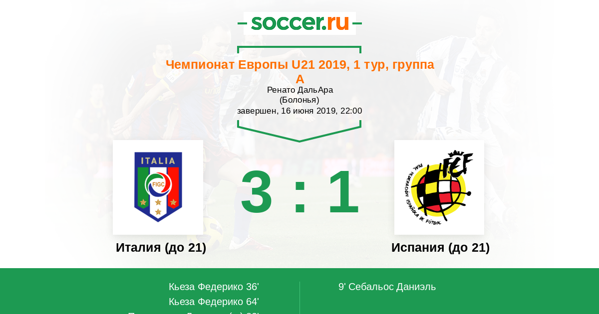 36' (1:1) Кьеза Федерико (14) (Барелла Николо (18))
