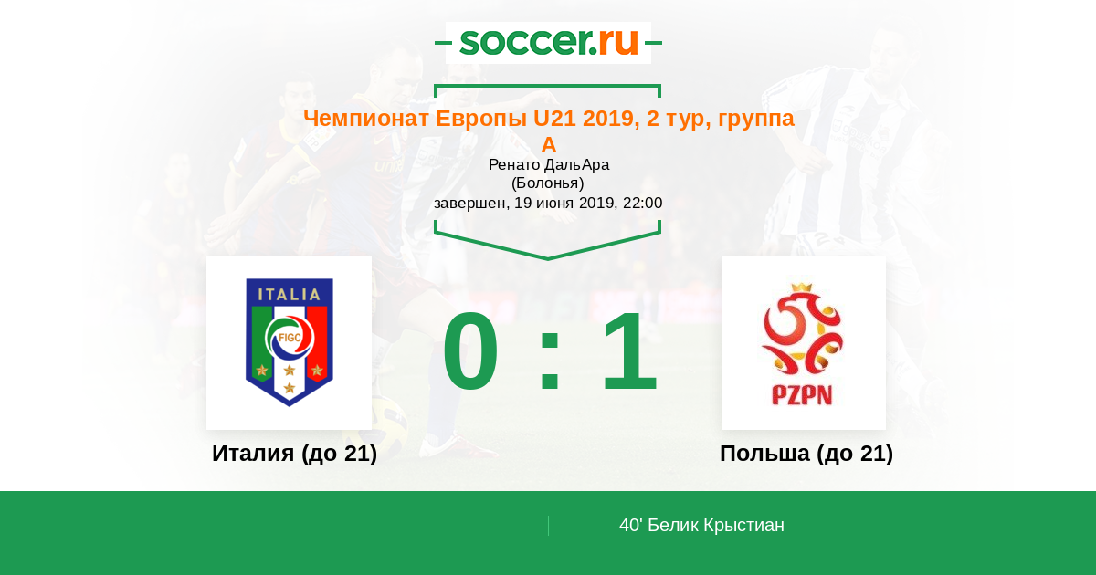 Протокол матча Италия (до 21) против Польша (до 21)