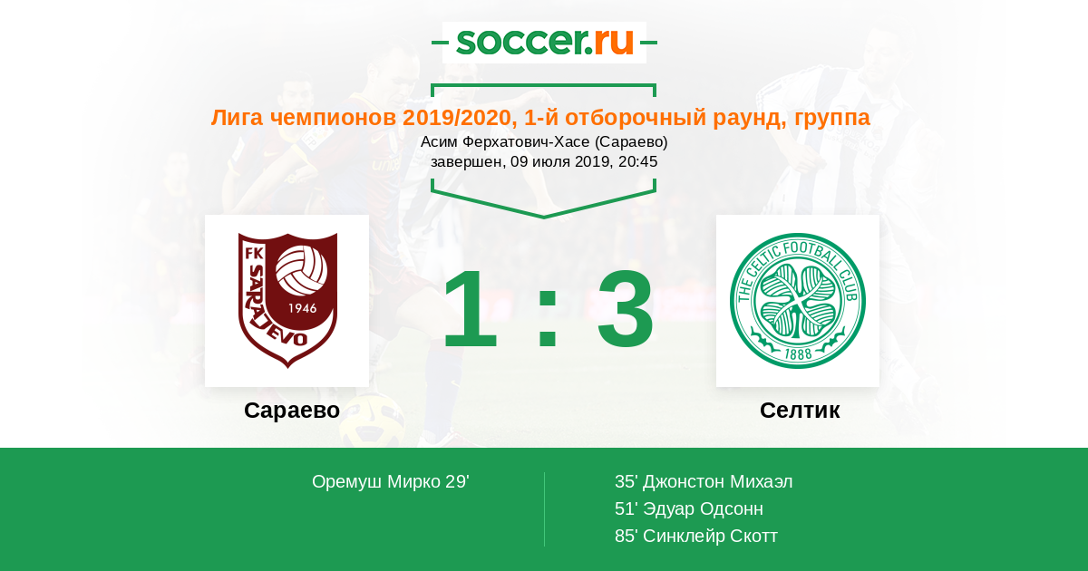Хоть Селтик явный фаворит этой паре, но Сараево тоже "крепкий орешек" !!! Ждем красивого футбола !!!
