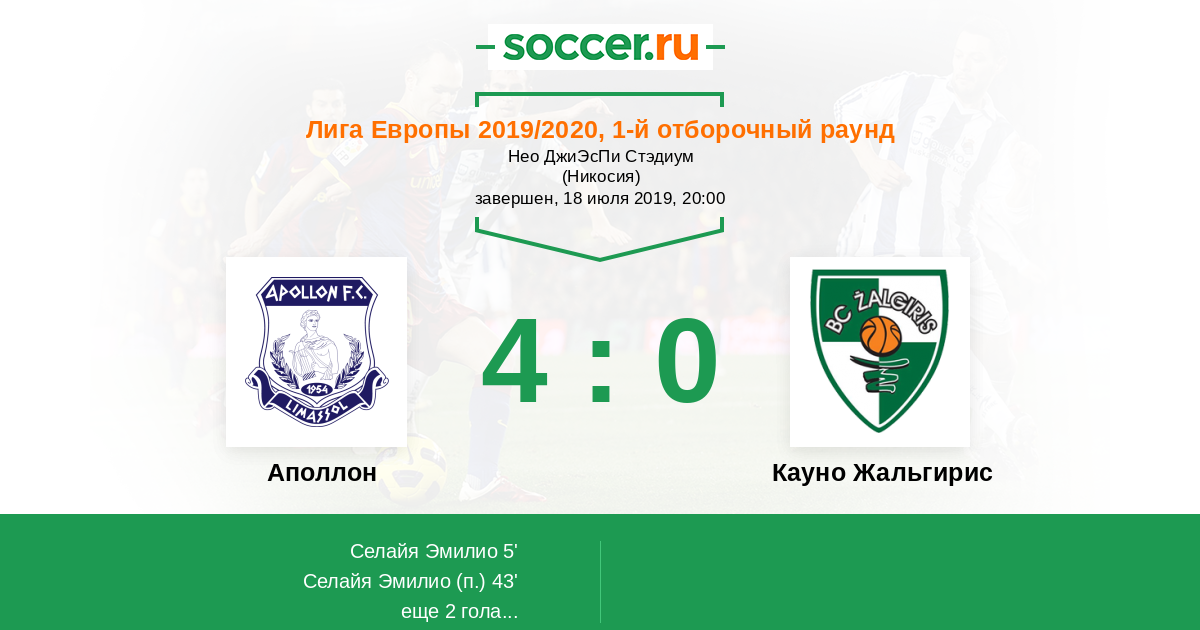 Протокол матча Аполлон против Кауно Жальгирис
