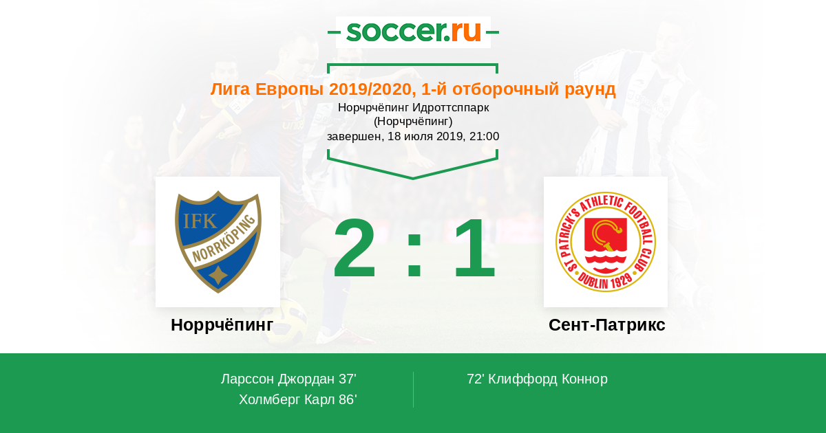 Протокол матча Норрчёпинг против Сент-Патрикс