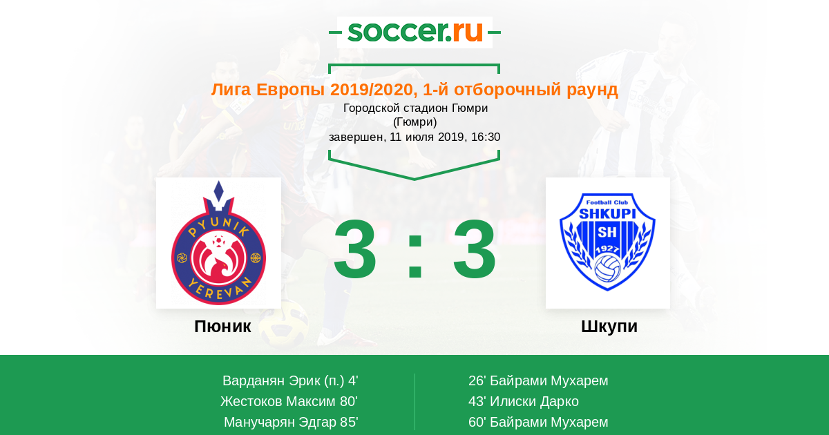 Протокол матча Пюник против Шкупи