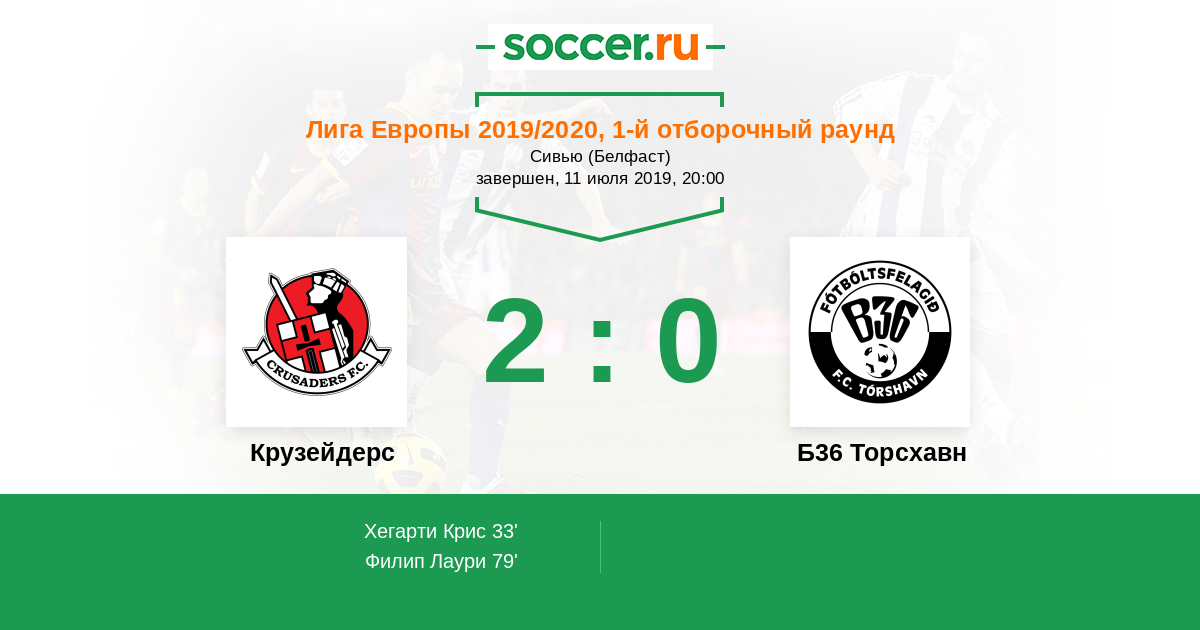 Протокол матча Крузейдерс против Б36 Торсхавн