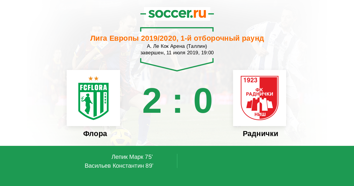 Протокол матча Флора против Раднички