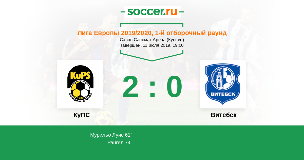 Протокол матча КуПС против Витебск