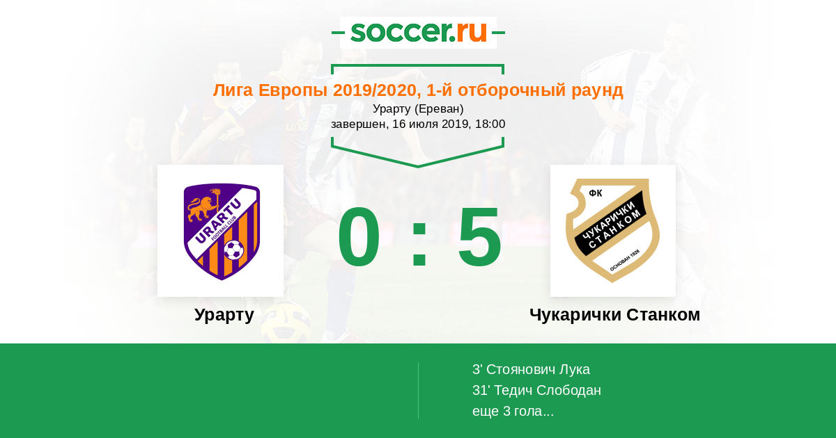 Протокол матча Урарту против Чукарички Станком