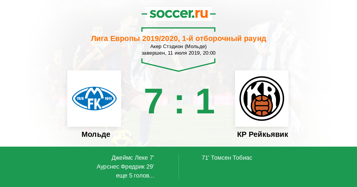 Протокол матча Мольде против КР Рейкьявик