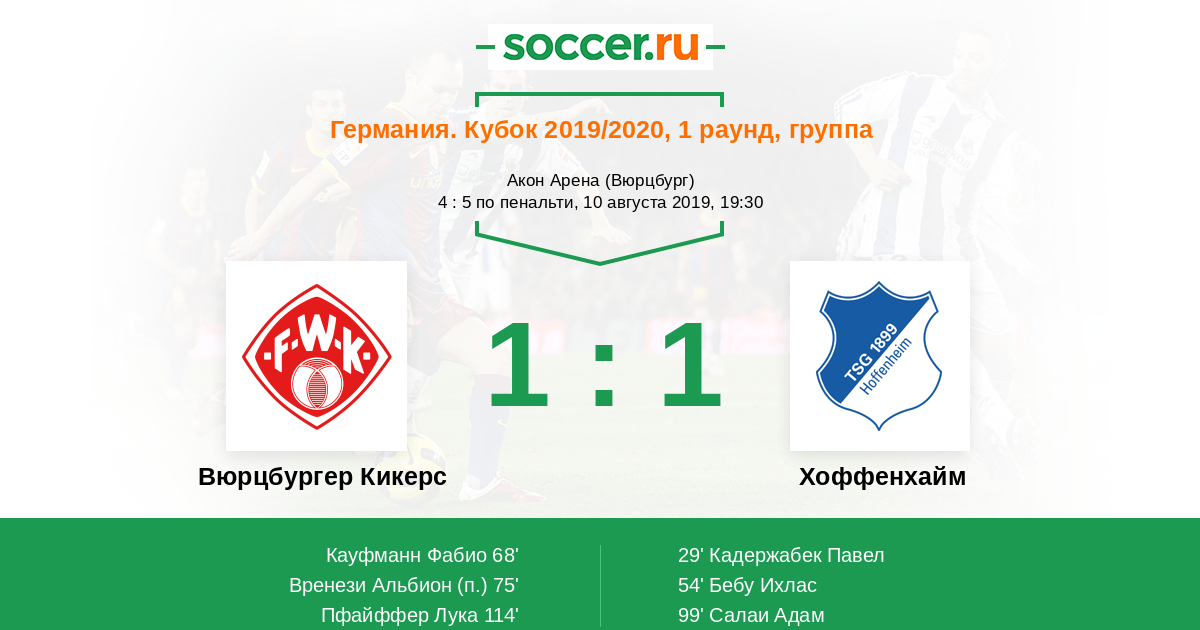 Протокол матча Вюрцбургер Кикерс против Хоффенхайм