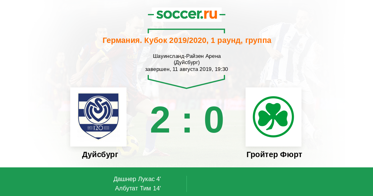 Протокол матча Дуйсбург против Гройтер Фюрт