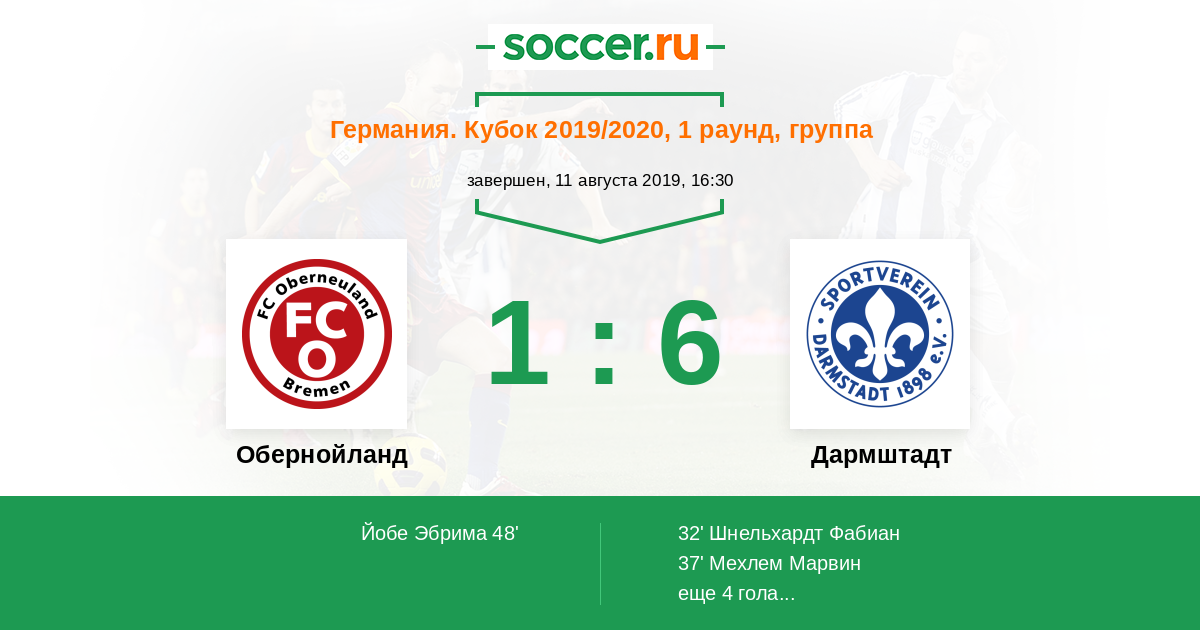 Протокол матча Обернойланд против Дармштадт