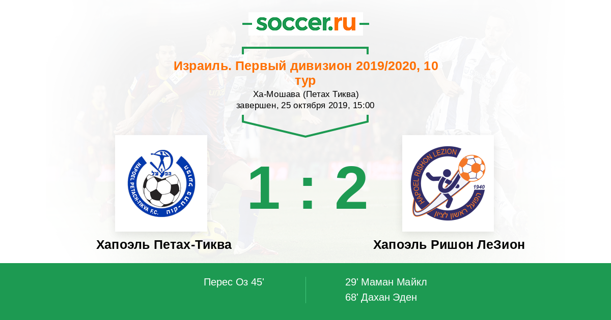 Протокол матча Хапоэль Петах-Тиква против Хапоэль Ришон ЛеЗион