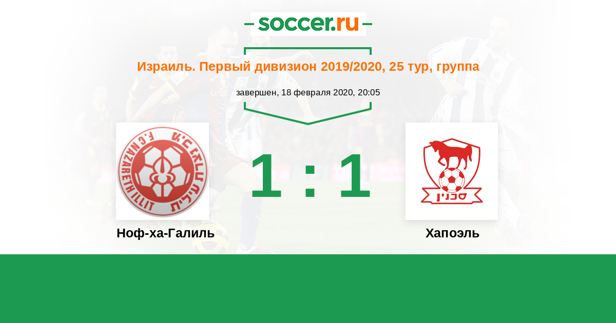 Израиль. Первый дивизион 21.03.2016 Ноф-ха-Галиль Логотип футбольный клуб Ноф-ха-Галиль (Назарет Иллит) 0:0 Логотип Хапоэль (Бней Лод) Хапоэль