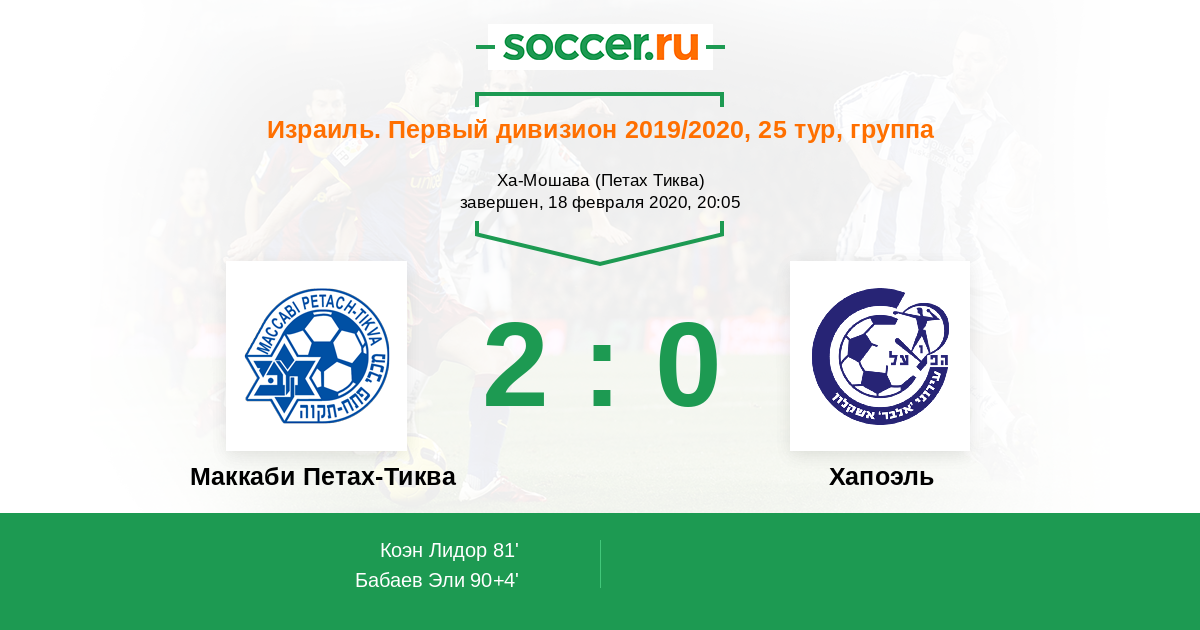 Протокол матча Маккаби Петах-Тиква против Хапоэль