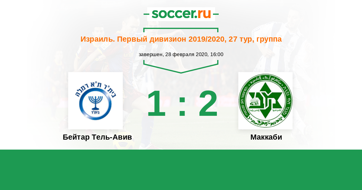 Израиль. Первый дивизион 12.02.2016 Маккаби Логотип футбольный клуб Маккаби (Ахи Назарет) 1:0 Логотип футбольный клуб Бейтар Тель-Авив Бейтар Тель-Авив