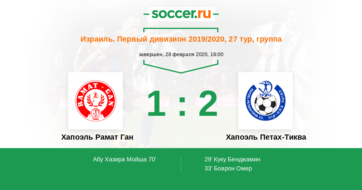 Протокол матча Хапоэль Рамат Ган против Хапоэль Петах-Тиква