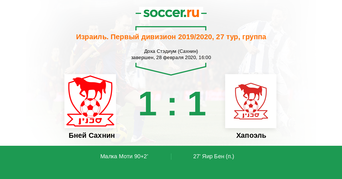 Протокол матча Бней Сахнин против Хапоэль