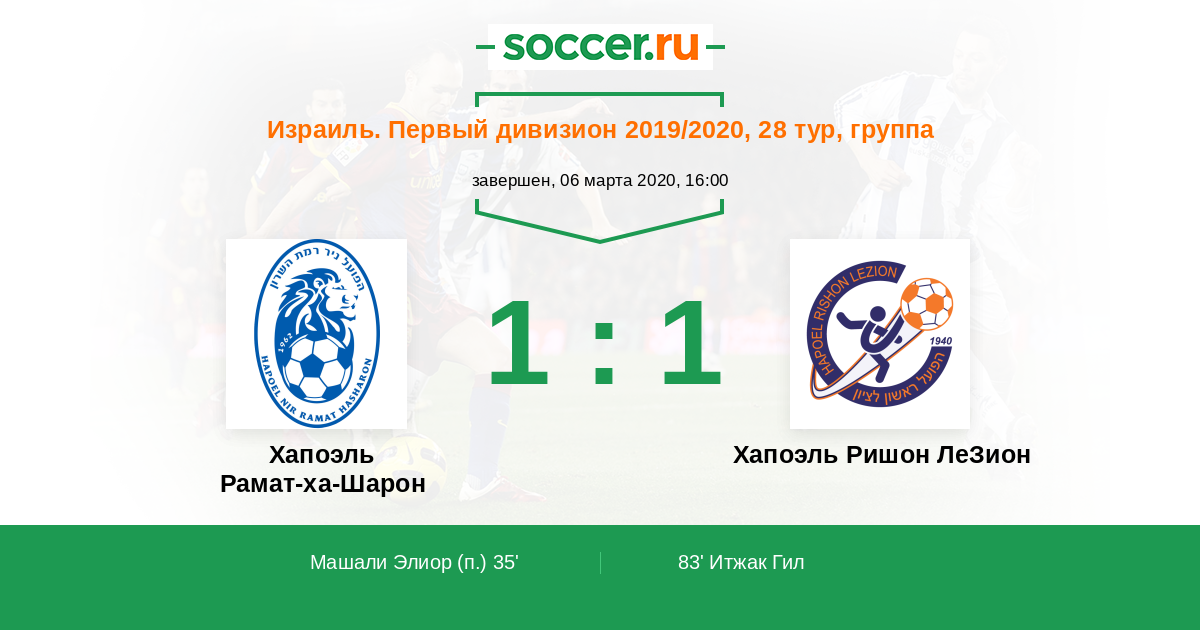 Протокол матча Хапоэль Рамат-ха-Шарон против Хапоэль Ришон ЛеЗион