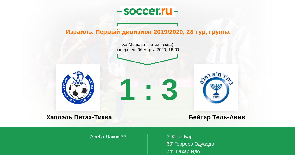 Протокол матча Хапоэль Петах-Тиква против Бейтар Тель-Авив