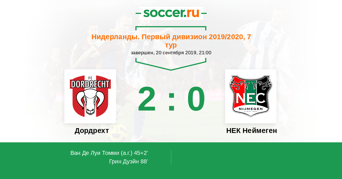 45+2' (1:0) Автогол Ван Де Луи Томми (6)