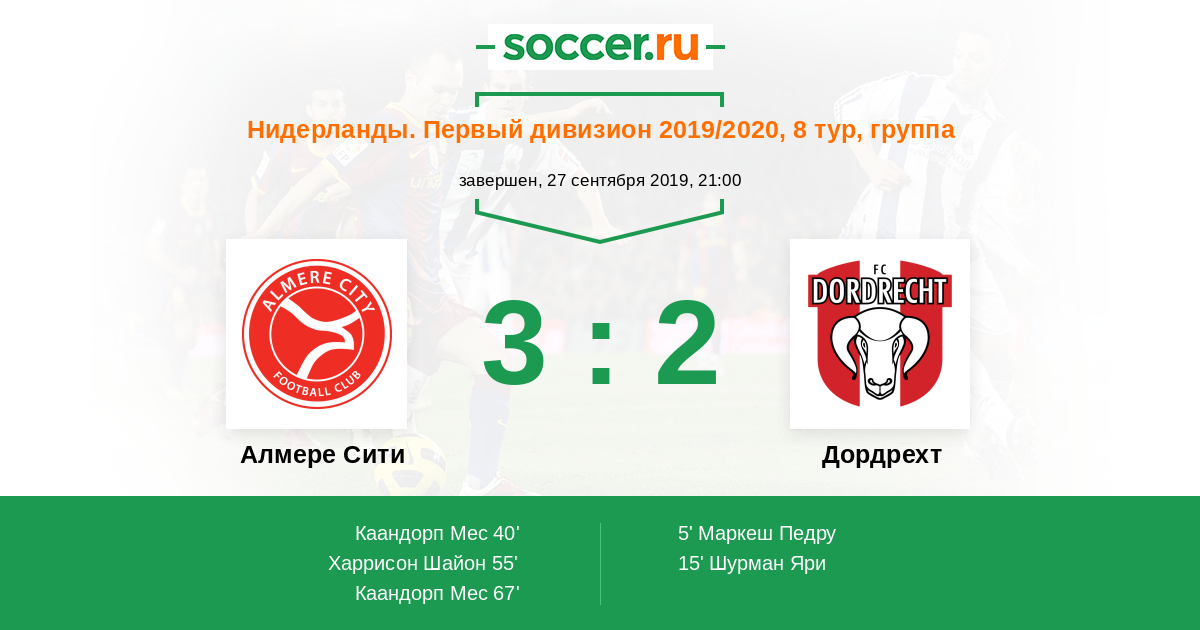 Протокол матча Алмере Сити против Дордрехт