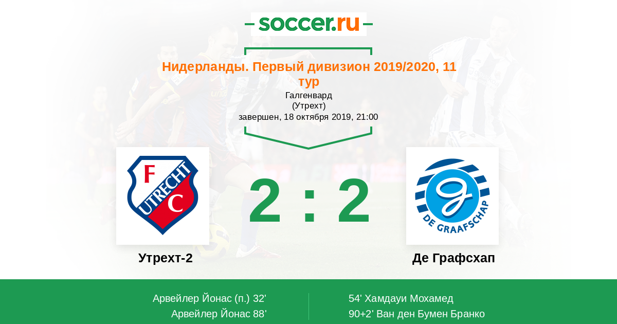 Протокол матча Утрехт-2 против Де Графсхап