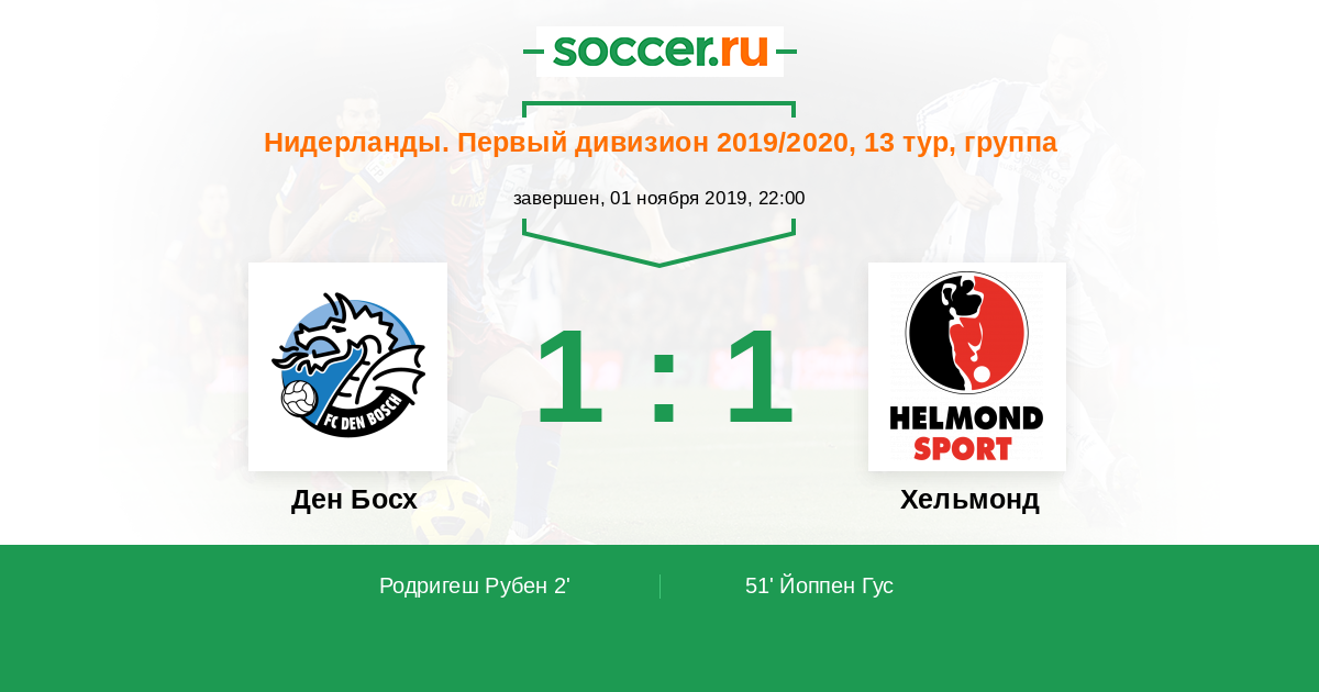 Протокол матча Ден Босх против Хельмонд