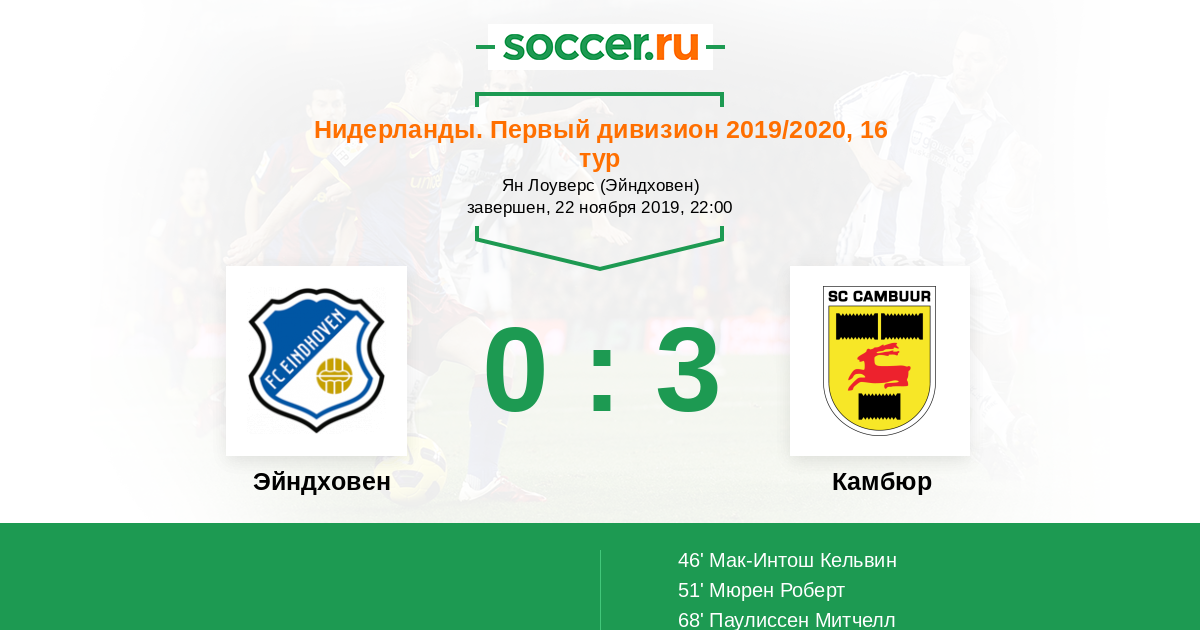 Протокол матча Эйндховен против Камбюр