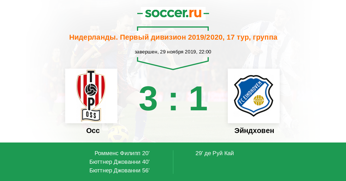 Протокол матча Осс против Эйндховен