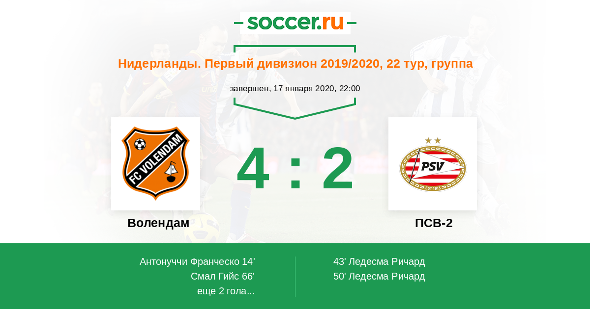 14' (1:0) Антонуччи Франческо (10) (Смал Гийс (5))