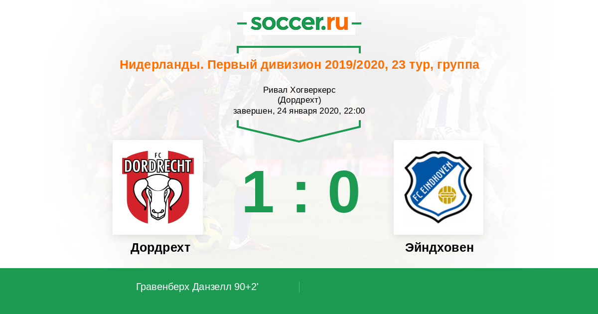 Протокол матча Дордрехт против Эйндховен