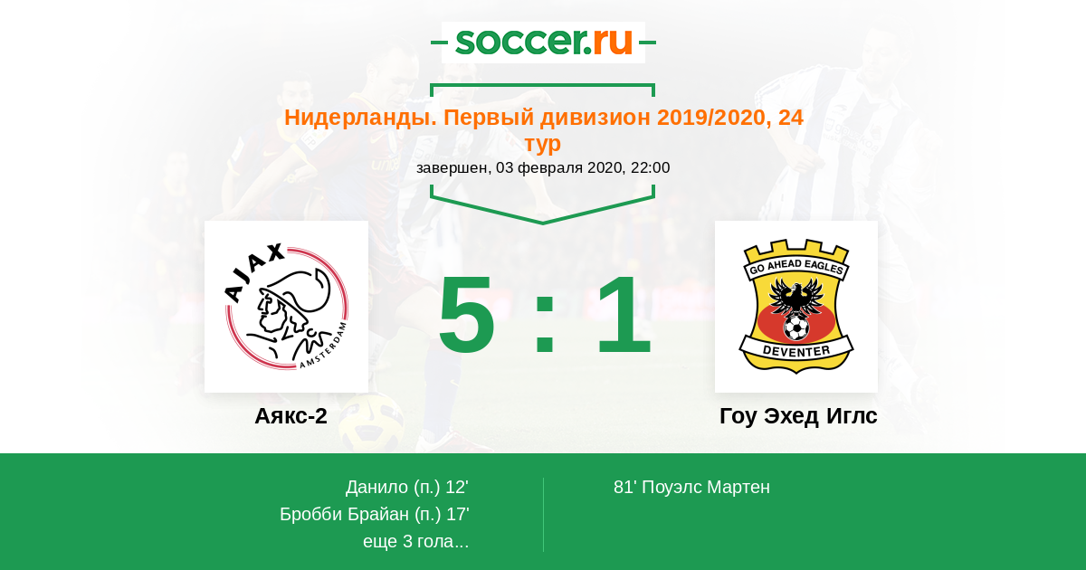 Протокол матча Аякс-2 против Гоу Эхед Иглс