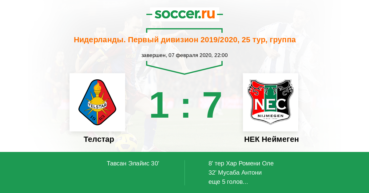 Протокол матча Телстар против НЕК Неймеген