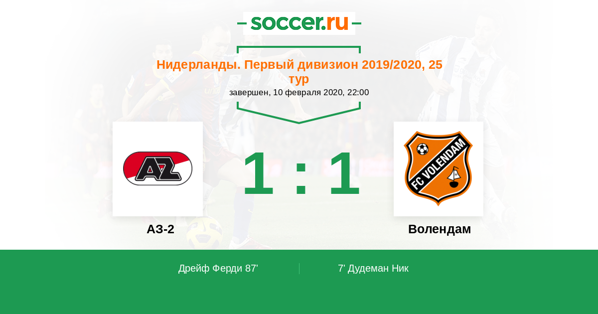 Протокол матча АЗ-2 против Волендам