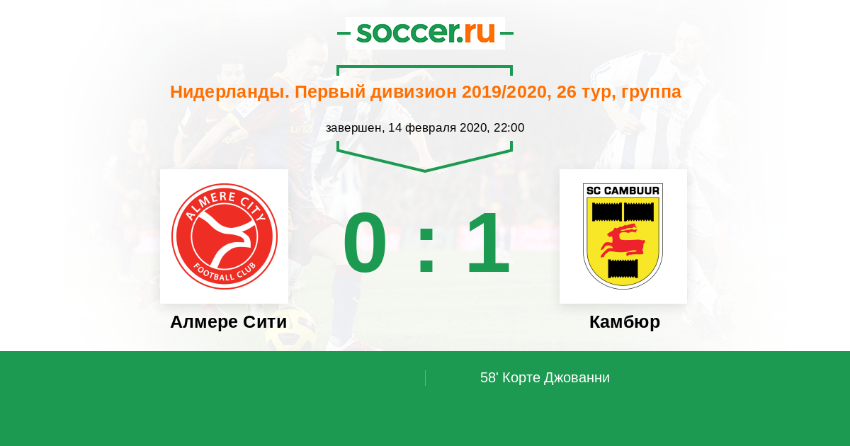 58' (0:1) Корте Джованни (11) (Антониа Ярчинио (27))