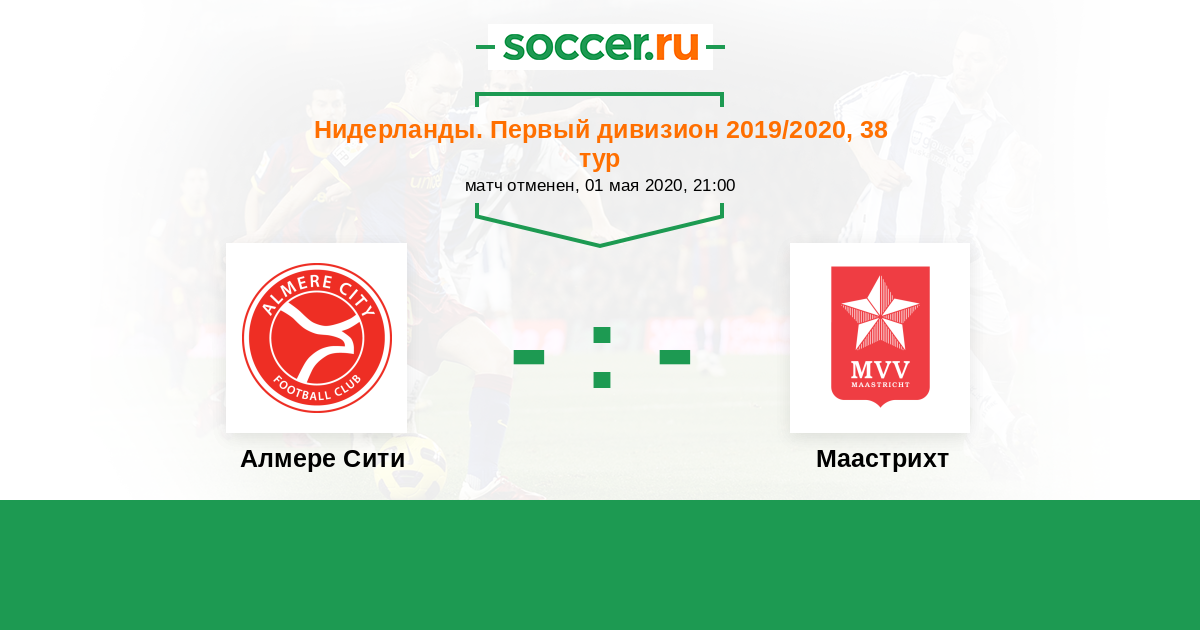 Нидерланды. Первый дивизион 12.02.2010 Алмере Сити Логотип футбольный клуб Алмере Сити 1:1 Логотип футбольный клуб Маастрихт Маастрихт