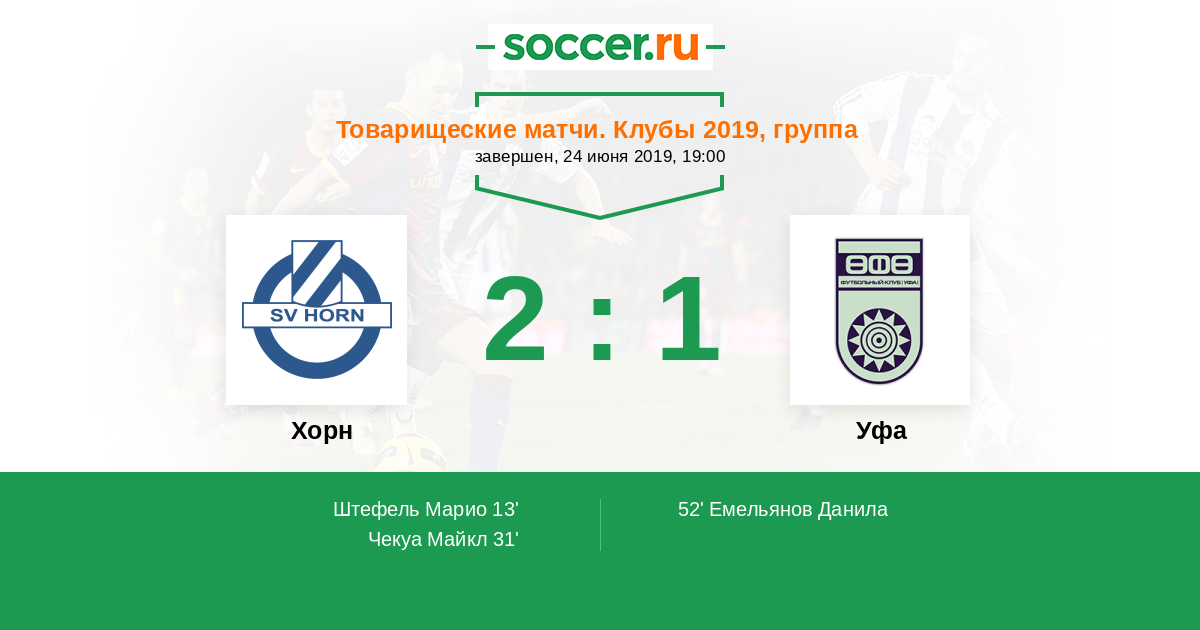 Протокол матча Хорн против Уфа