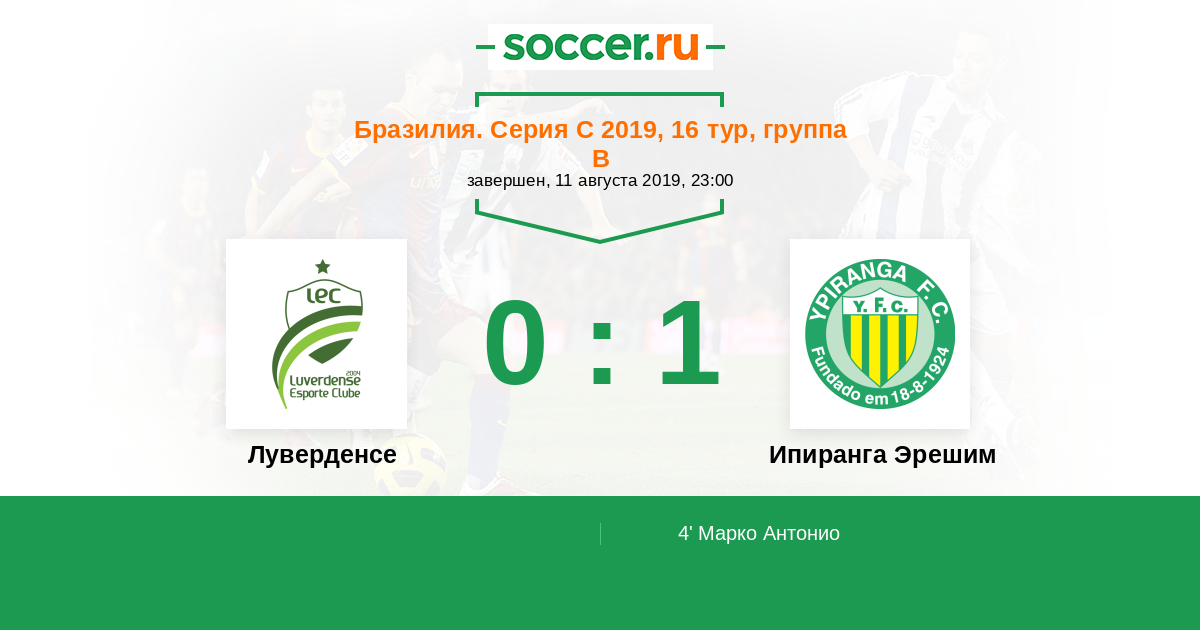 Протокол матча Луверденсе против Ипиранга Эрешим