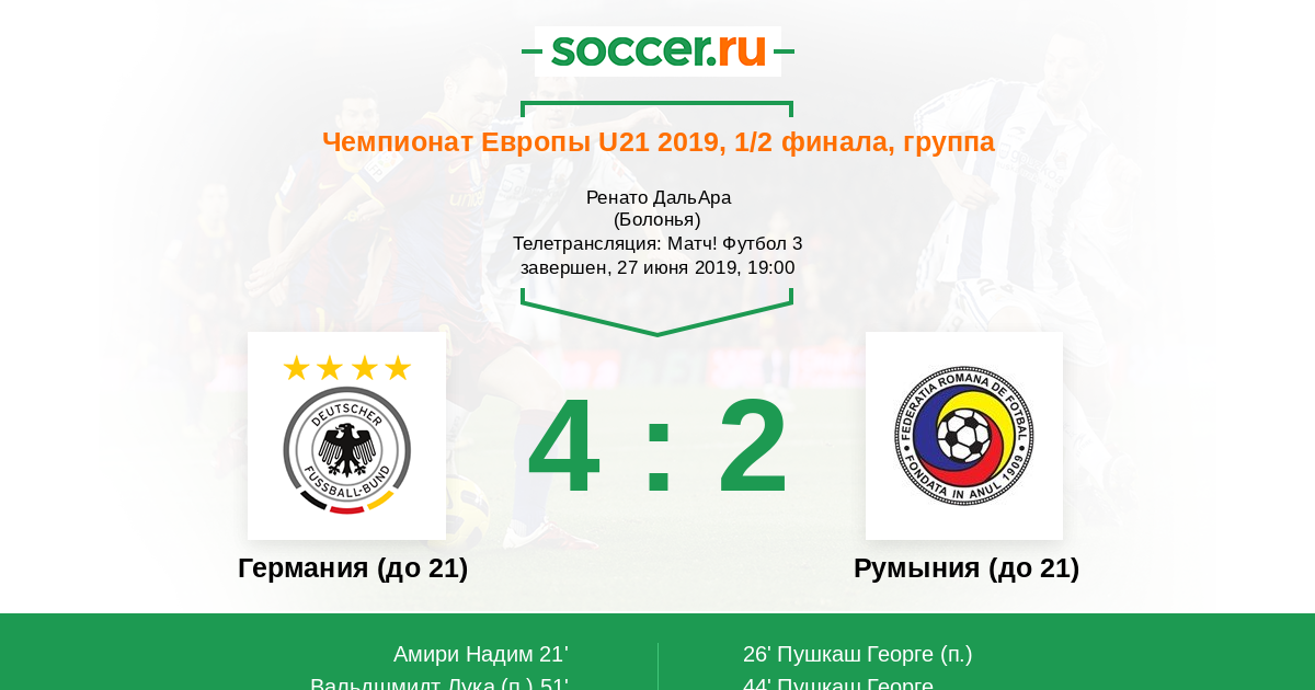 Протокол матча Германия (до 21) против Румыния (до 21)