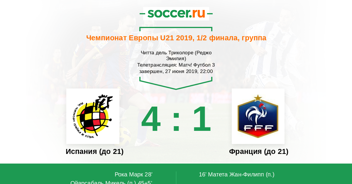 Протокол матча Испания (до 21) против Франция (до 21)