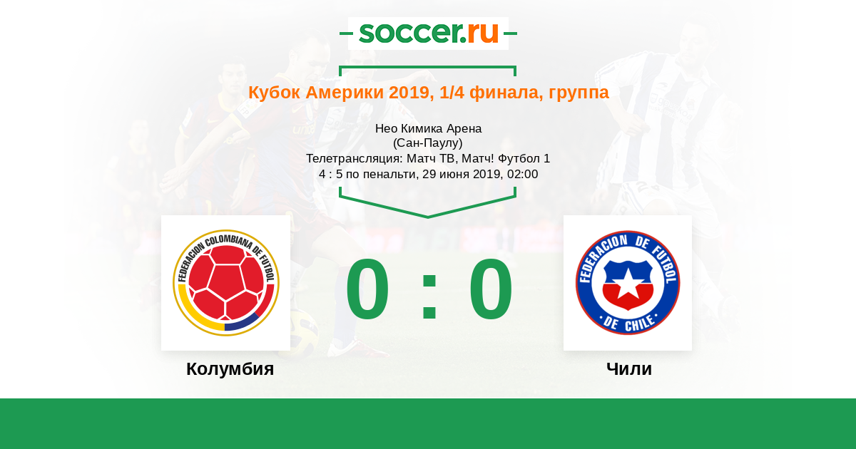Чили первый тайм лучше играли но во втором думаю Колумбия будет. Они обычно вторые таймы сильнее проводят.