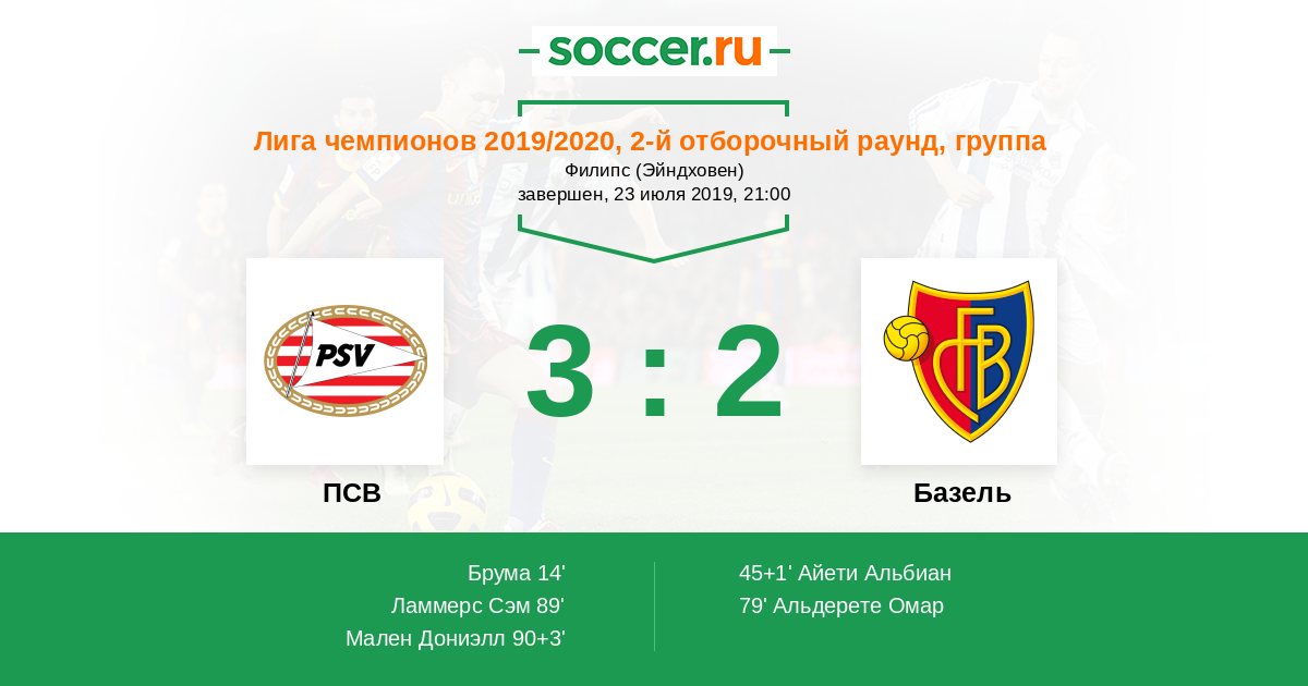 Протокол матча ПСВ против Базель