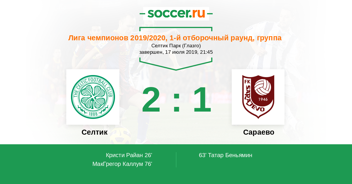 Протокол матча Селтик против Сараево