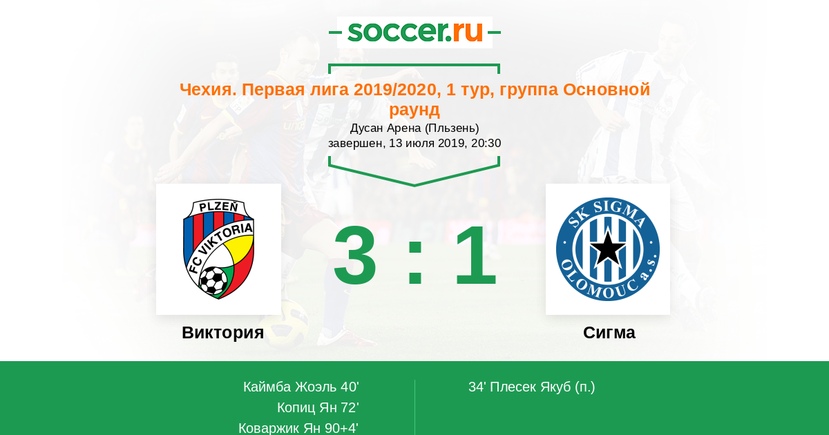 Протокол матча Виктория против Сигма