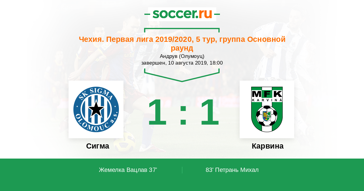 Протокол матча Сигма против Карвина